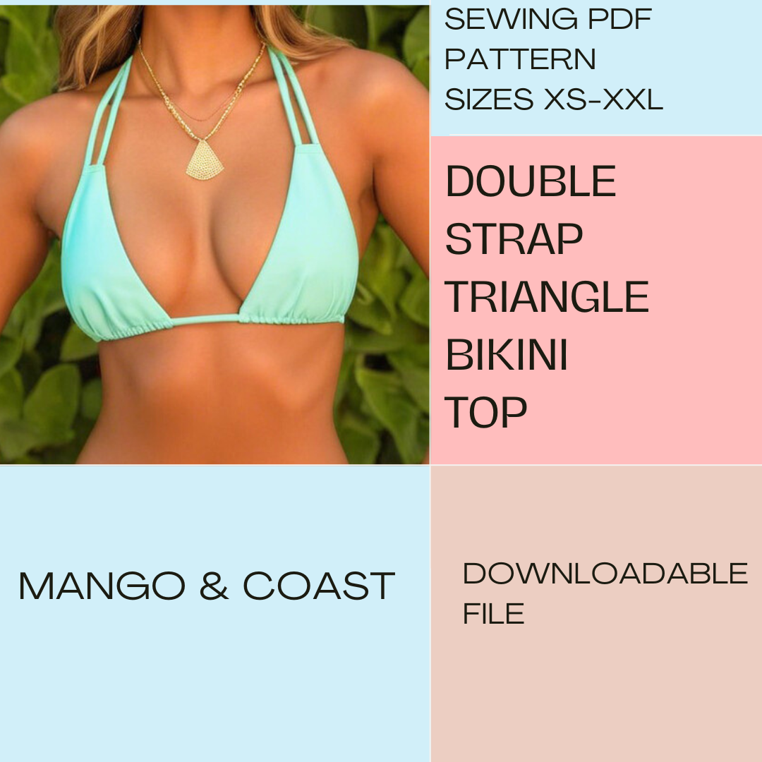 DIY Swimwear | Double Strap Triangle Bikini Top | pdf sewing pattern | Reversible Non-Reversible | Swimsuit, Women’s Bathing Suit XS–XXL
