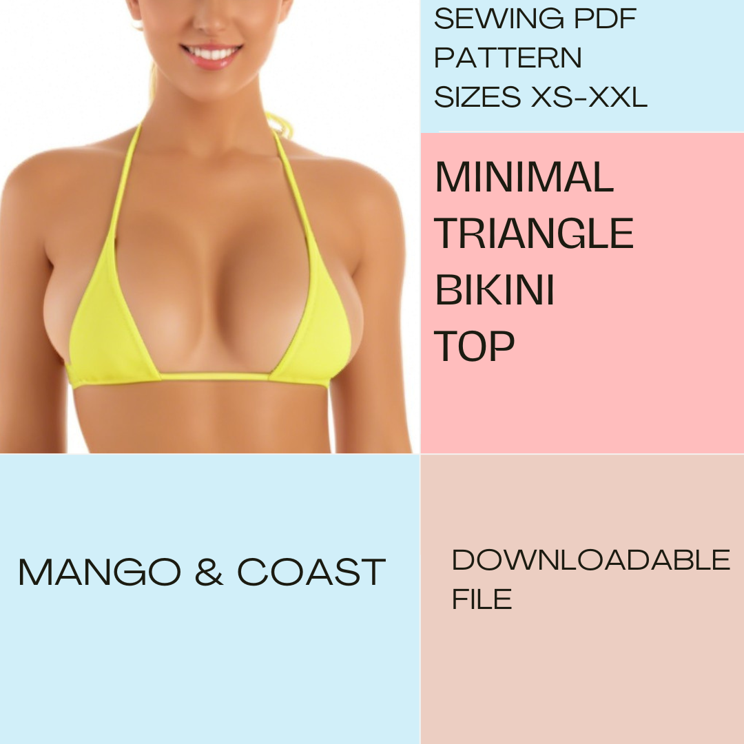 DIY Swimwear | Minimal Triangle Bikini Top | pdf sewing pattern | Reversible Non-Reversible | Swimsuit, Women’s Bathing Suit XS–XXL
